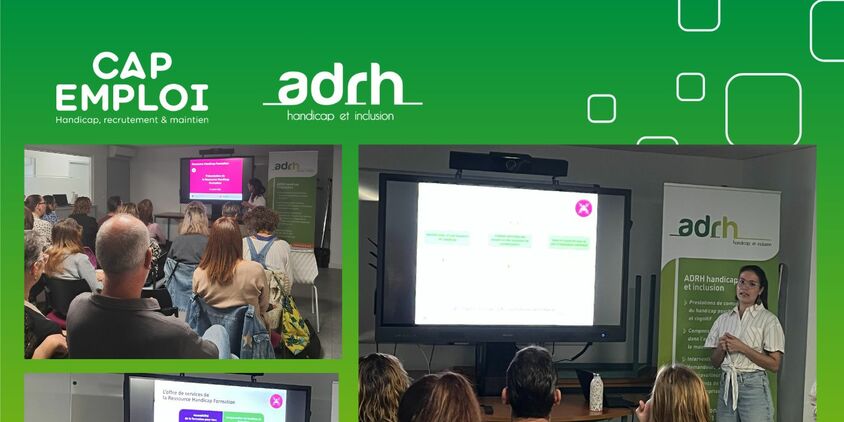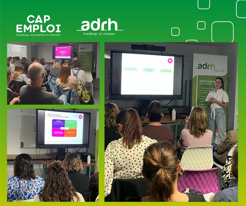 Cette rencontre, animée par les professionnels des services de l’Adrh (Cap Emploi, l’Emploi accompagné, la Mission RSA, les Appuis Spécifiques ), et Cécile MARIN, RHF pour l’AGEFIPH a permis de présenter le rôle de la RHF et son articulation avec les prestataires d’appuis spécifiques relatifs au handicap psychique, auditif, neuro-développemental, cérébro-lésé portés par les associations ADRH, Cohérence Réseau, UGECAM, ARIEDA.