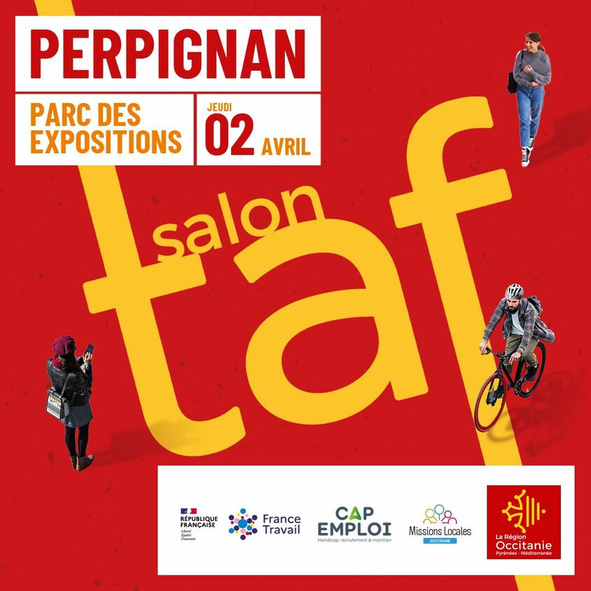 Le salon TAF de Perpignan aura lieu le 2 avril 2026 au Parc des expositions de 9 heures à 17 heures. Co-organisé par la Région, France Travail, la Mission Locales Jeunes, le réseau des Cap Emploi et les partenaires institutionnels.